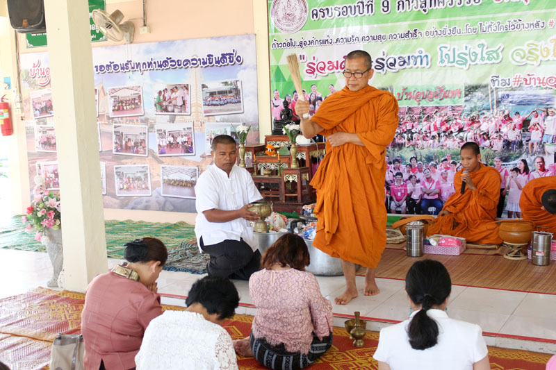 ร่วมทำบุญเลี้ยงพระจำนวน 9 รูป เนื่องในโอกาสครบรอบ 9 ปี สถานคุ้มครองและพัฒนาคนพิการบ้านอุบลฮักแพง จังหวัดอุบลราชธานี