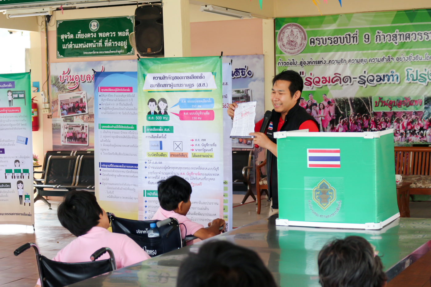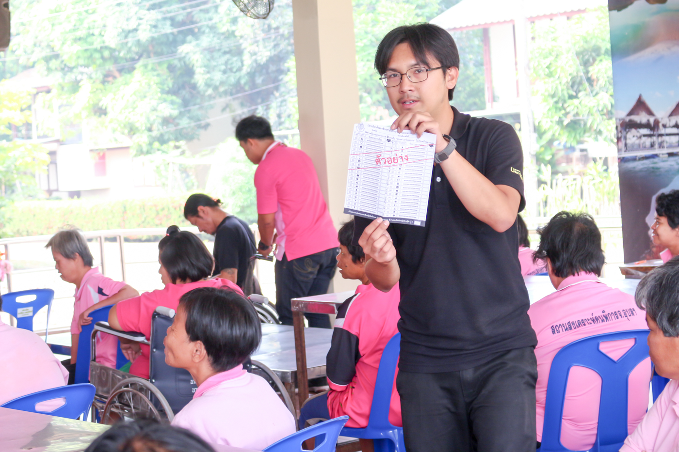 อบรมให้ความรู้เกี่ยวกับการเลือกตั้ง และขั้นตอนการลงคะแนนที่ถูกต้องให้แก่ผู้รับริการบ้านอุบลฮักแพง