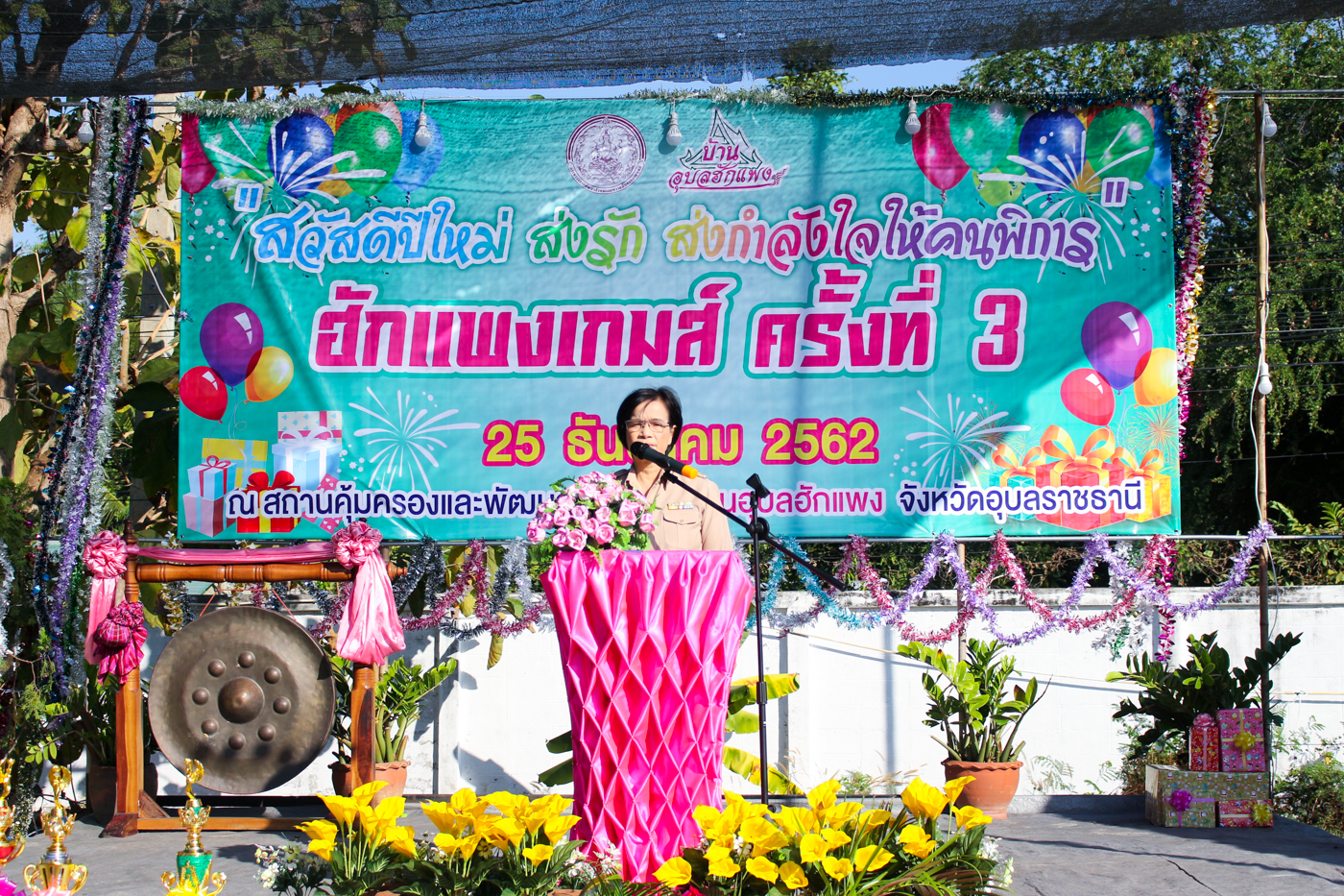 ร่วมจัดกิจกรรมกีฬาสีสัมพันธ์ สังสรรค์งานปีใหม่ ประจำปี 2563 ฮักแพงเกมส์ ครั้งที่ 3 โดยมี นางอภิญญา ชมภูมาศ พัฒนาสังคมและความมั่นคงของมนุษย์จังหวัดอุบลราชธานี ให้เกียรติเป็นประธานเปิดงาน ณ สถานคุ้มครองและพัฒนาคนพิการบ้านอุบลฮักแพง จังหวัดอุบลราชธานี