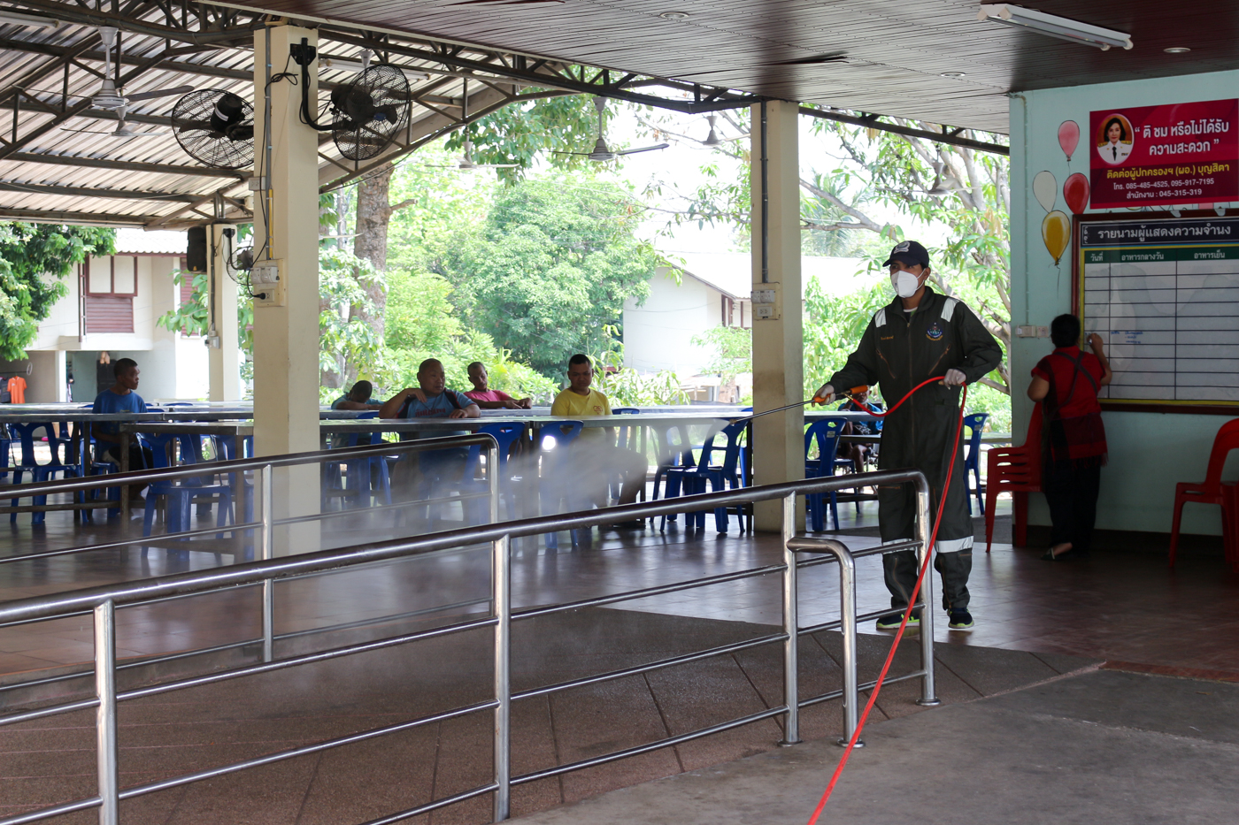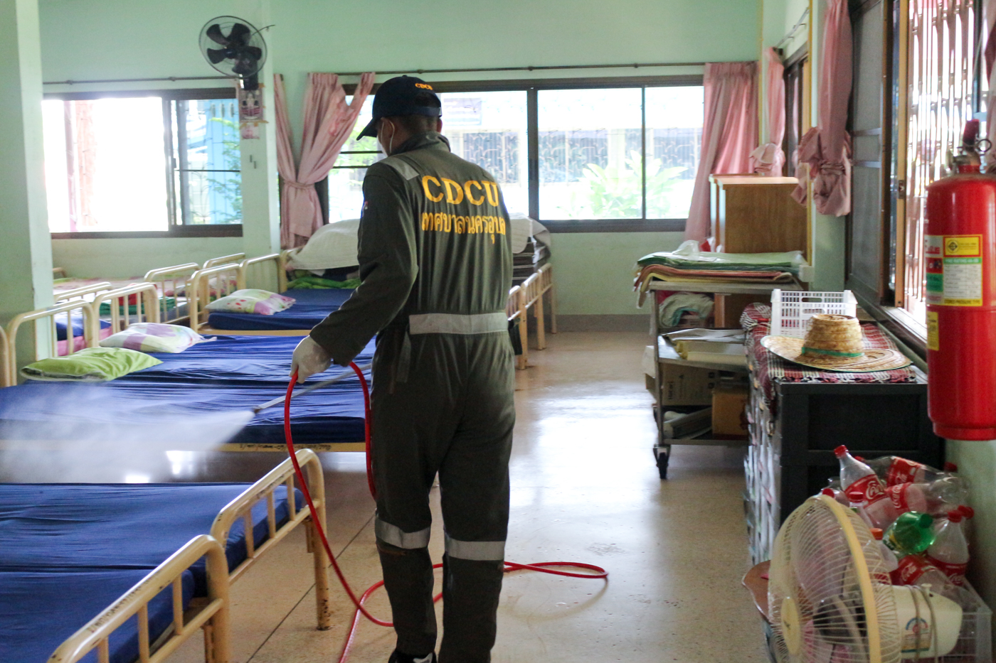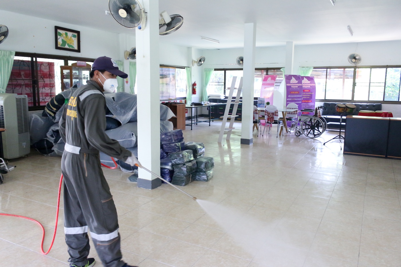 ฉีดพ่นละอองฆ่าเชื้อไวรัส ตามมาตรการป้องกันการแพร่ระบาดเชื้อไวรัส COVID-19