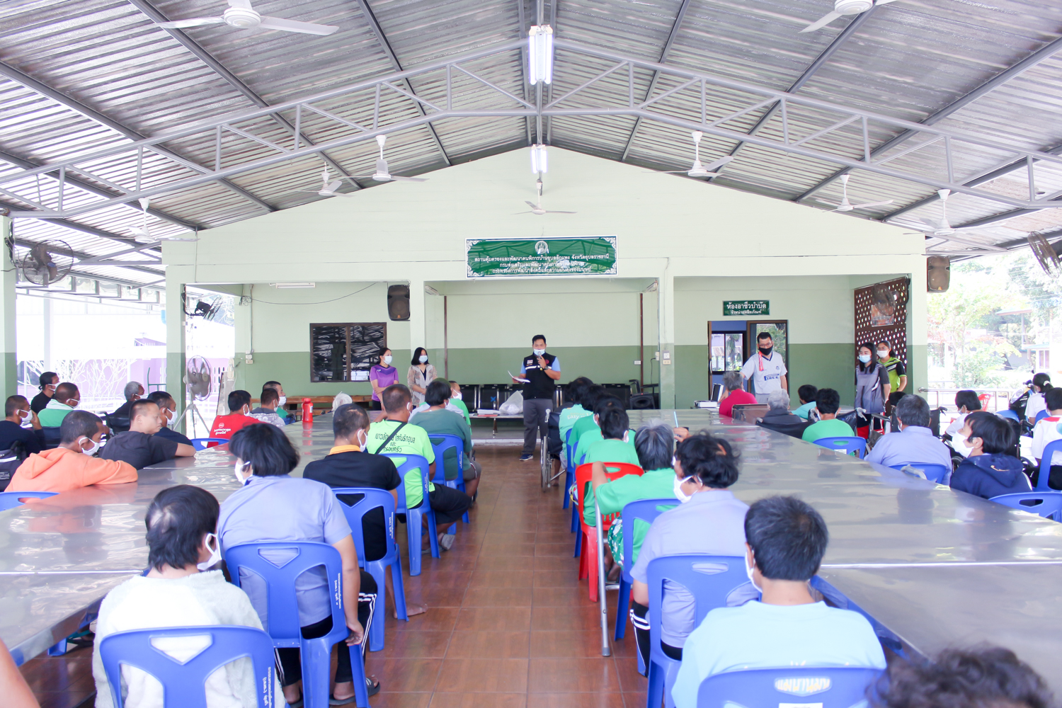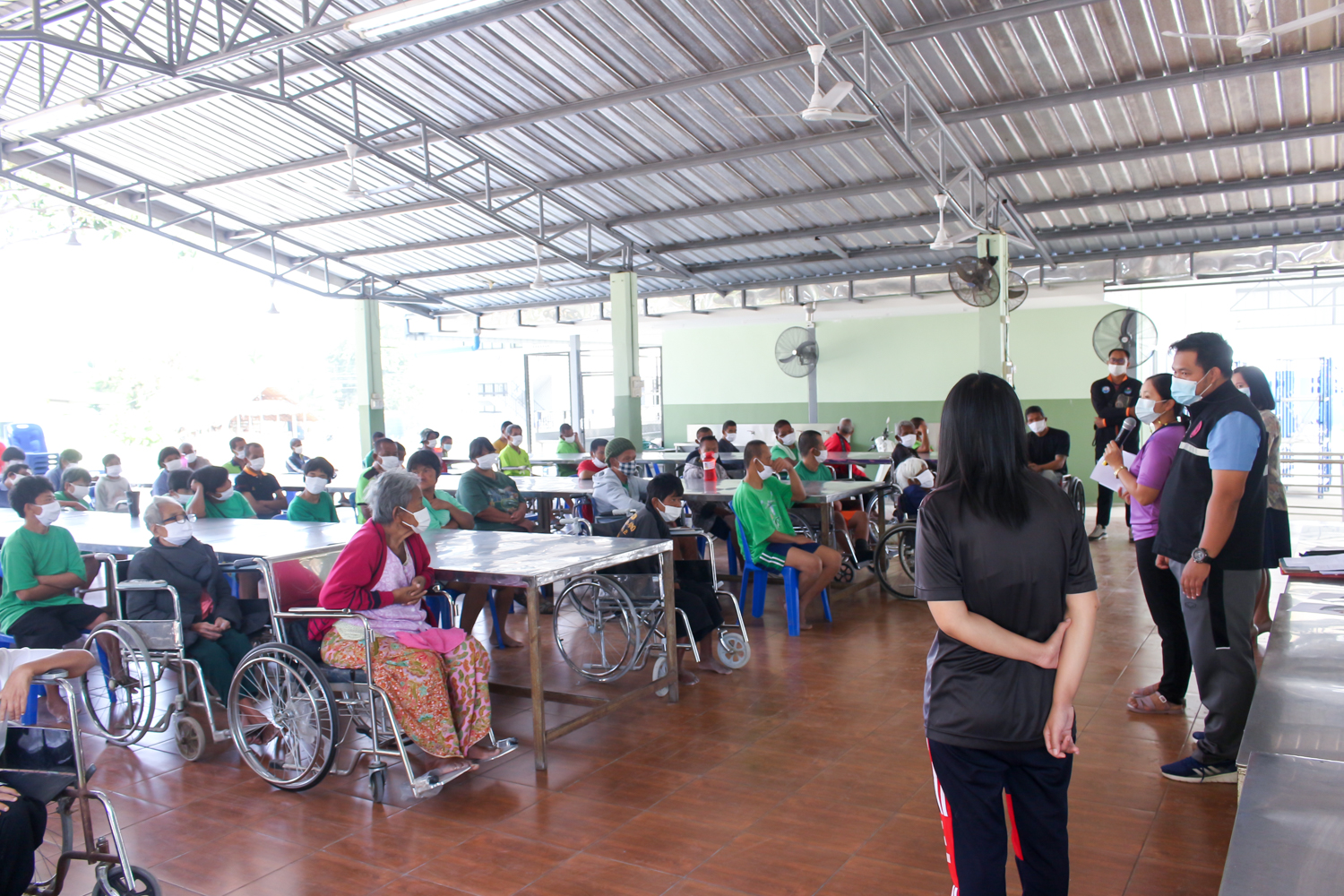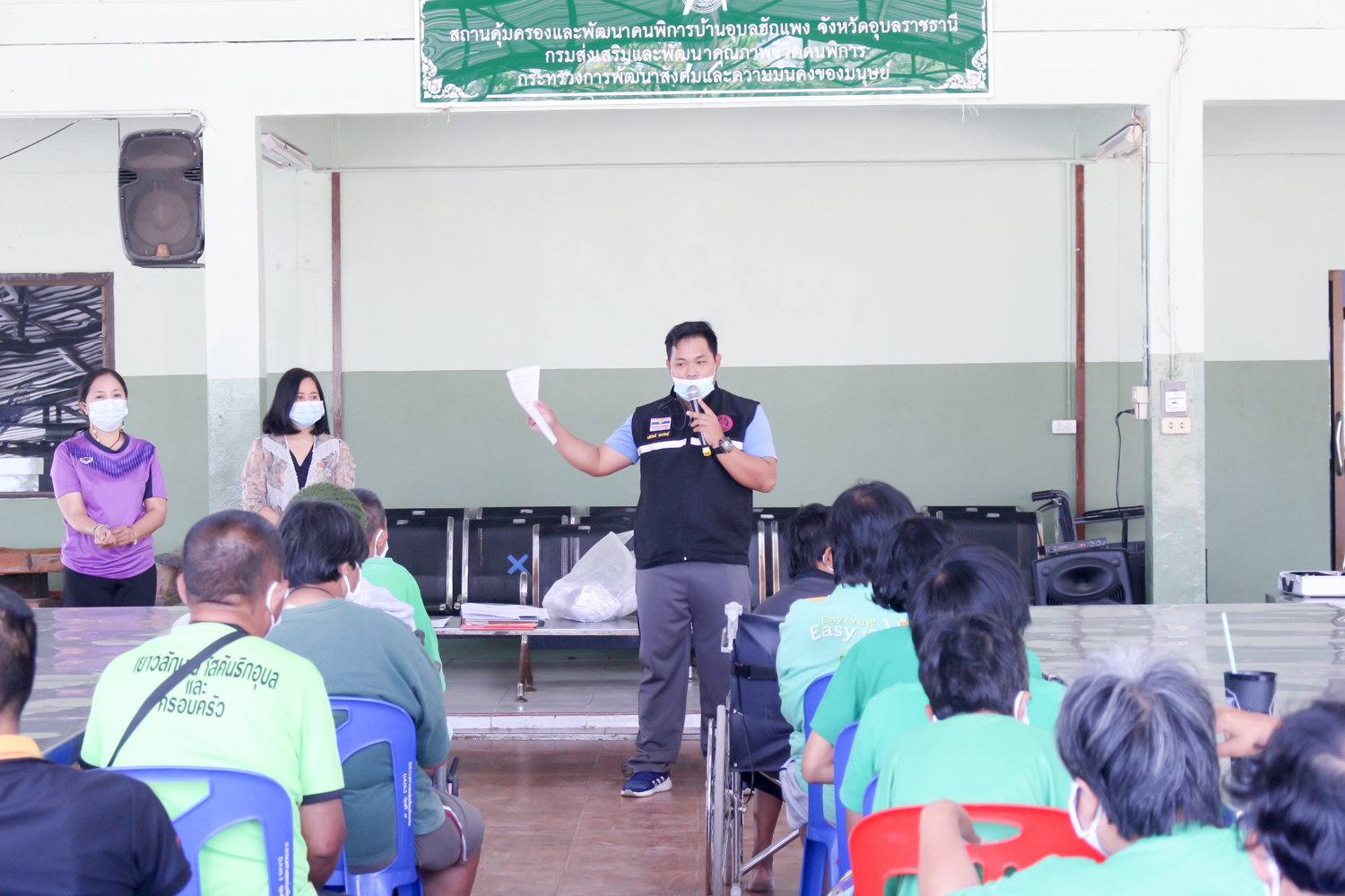 ชี้แจ้งทำความเข้าใจ ขั้นตอนการลงทะเบียน "โครงการเราชนะ" ให้แก่ผู้ใช้บริการที่มีสิทธิ์เข้าร่วมโครงการ ณ บริเวณโรงอาหาร สถานคุ้มครองและพัฒนาคนพิการบ้านอุบลฮักแพง จังหวัดอุบลราชธานี