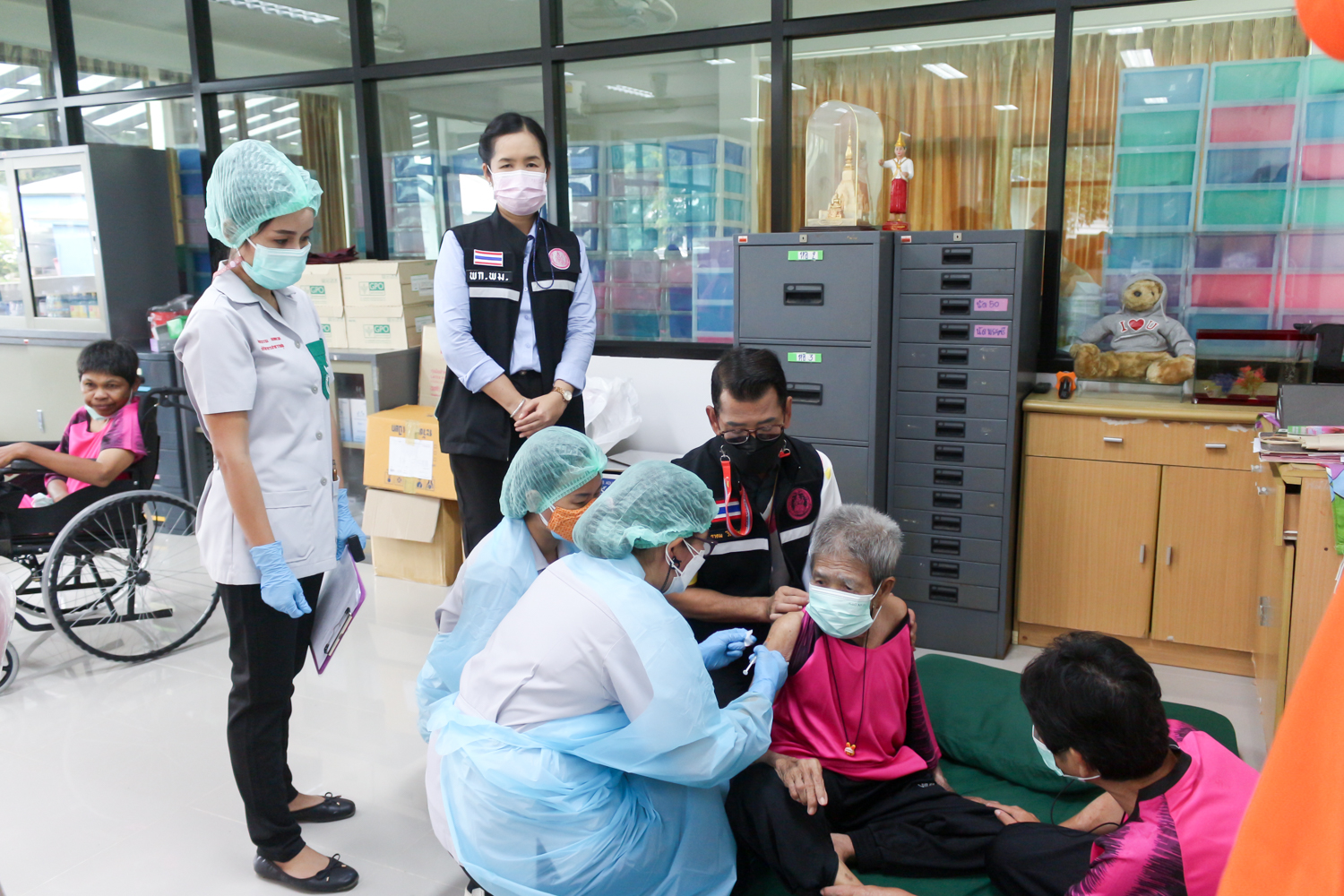 วันที่ 26 สิงหาคม 2564 นางสาวณัฐนิช จันทร์มา ผู้ปกครองสถานคุ้มครองและพัฒนาคนพิการบ้านอุบลฮักแพงจังหวัดอุบลราชธานี พร้อมด้วยข้าราชการ และเจ้าหน้าที่ ร่วมให้การต้อนรับคณะเจ้าหน้าที่สาธารณสุขจังหวัดอุบลราชธานี ให้ความอนุเคราะห์บริการฉีดวัคซีนแก่คนพิการภายในสถานคุ้มครองฯ ซึ่งเป็นวัคซีนพระราชทาน "ซิโนฟาร์ม" ทั้งนี้เพื่อปฏิบัติตามมาตรการป้องกันการแพร่ระบาดของเชื้อไวรัส Covid-19 ณ สถานคุ้มครองและพัฒนาคนพิการบ้านอุบลฮักแพง จังหวัดอุบลราชธานี |