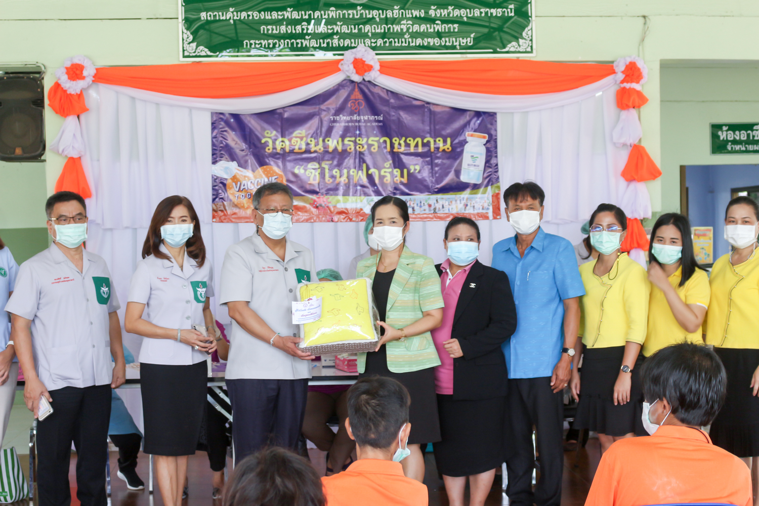 วันที่ 17 กันยายน 2564 นางสาวณัฐนิช จันทร์มา ผู้ปกครองสถานคุ้มครองและพัฒนาคนพิการบ้านอุบลฮักแพงจังหวัดอุบลราชธานี พร้อมด้วยข้าราชการ และเจ้าหน้าที่ ร่วมให้การต้อนรับ นายวิรุจ วิชัยบุญ รองผู้ว่าราชการจังหวัดอุบลราชธานี และคณะเจ้าหน้าที่สาธารณสุขจังหวัดอุบลราชธานี ให้ความอนุเคราะห์บริการฉีดวัคซีนแก่คนพิการภายในสถานคุ้มครองฯ ซึ่งเป็นวัคซีนพระราชทาน "ซิโนฟาร์ม" เข็มที่ 2 ทั้งนี้เพื่อปฏิบัติตามมาตรการป้องกันการแพร่ระบาดของเชื้อไวรัส Covid-19 ณ สถานคุ้มครองและพัฒนาคนพิการบ้านอุบลฮักแพง จังหวัดอุบลราชธานี |